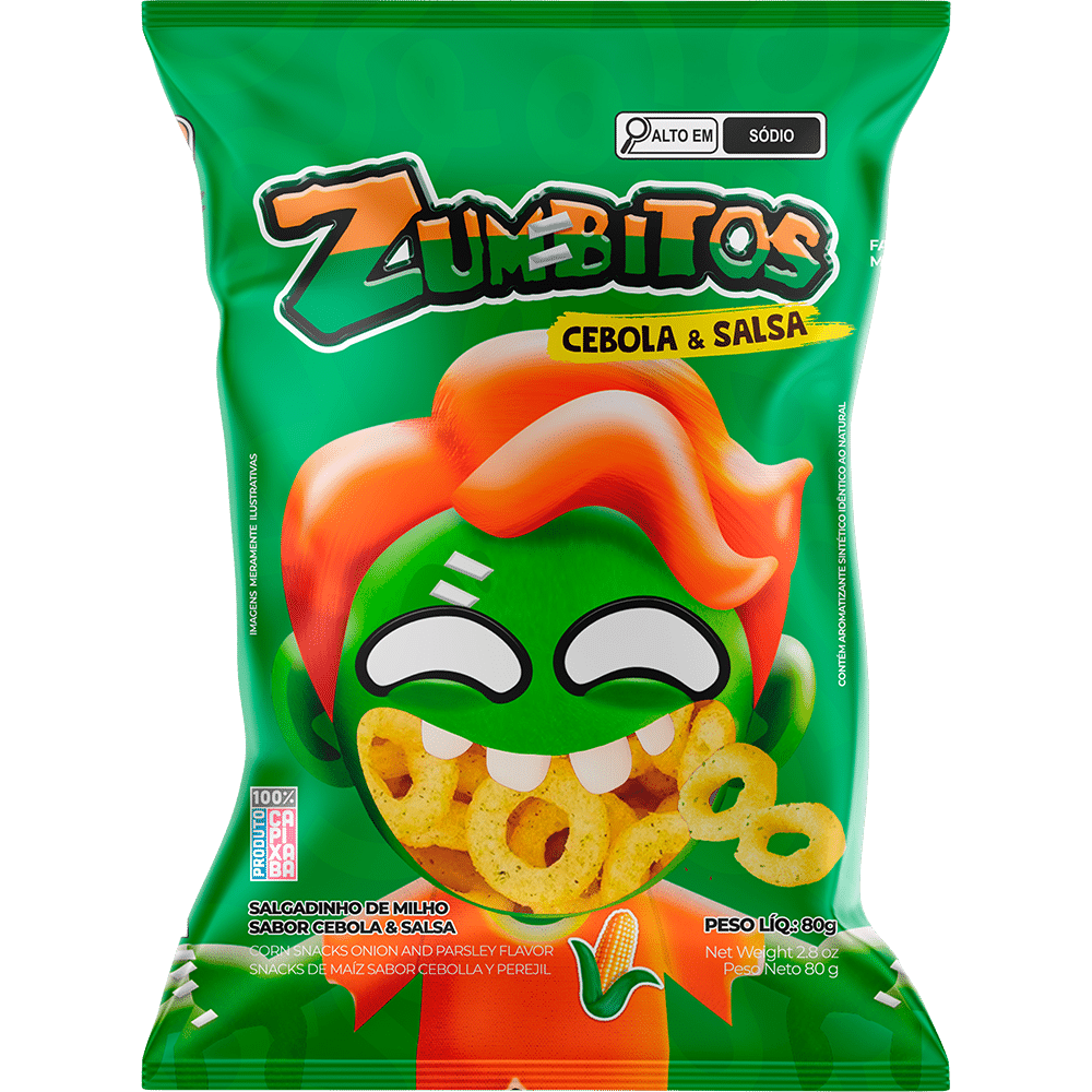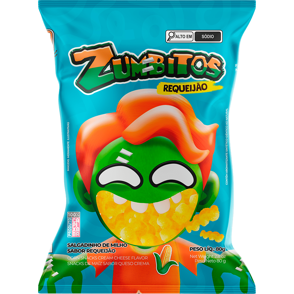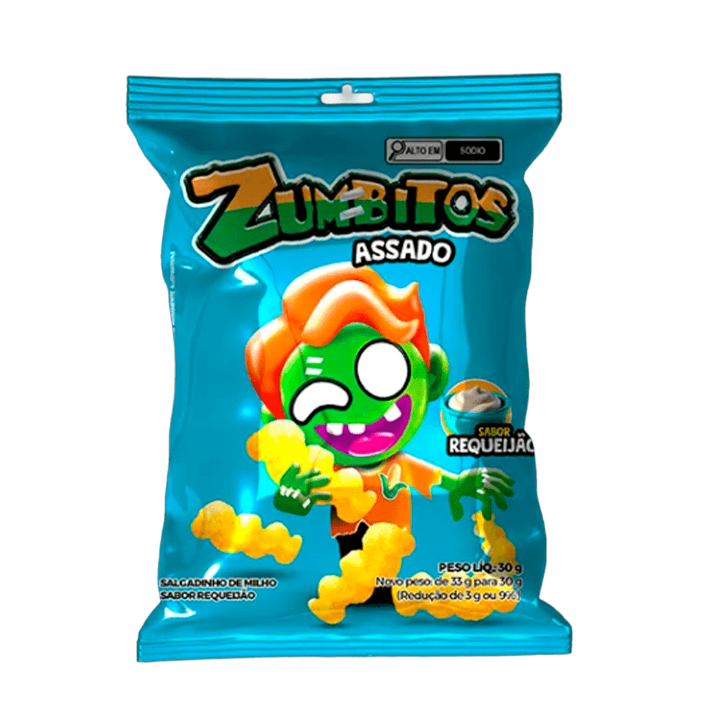 Quando a fome bate, todo mundo só pensa em uma coisa: comer milholoos! Zumbitos é um salgadinho crocante e delicioso, que vai transofrmar sua hora do lanche! São 6 sabores assombrosos e impossíveis de resistir!